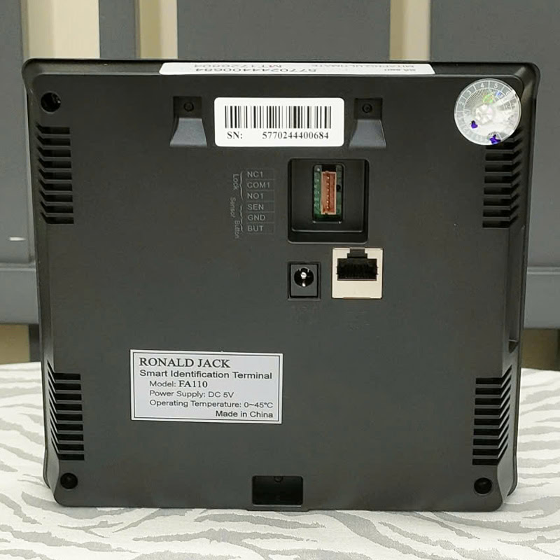 Hình thật máy chấm công khuôn mặt, vân tay Ronald Jack FA110 do Thế Giới Mã Vạch phân phối